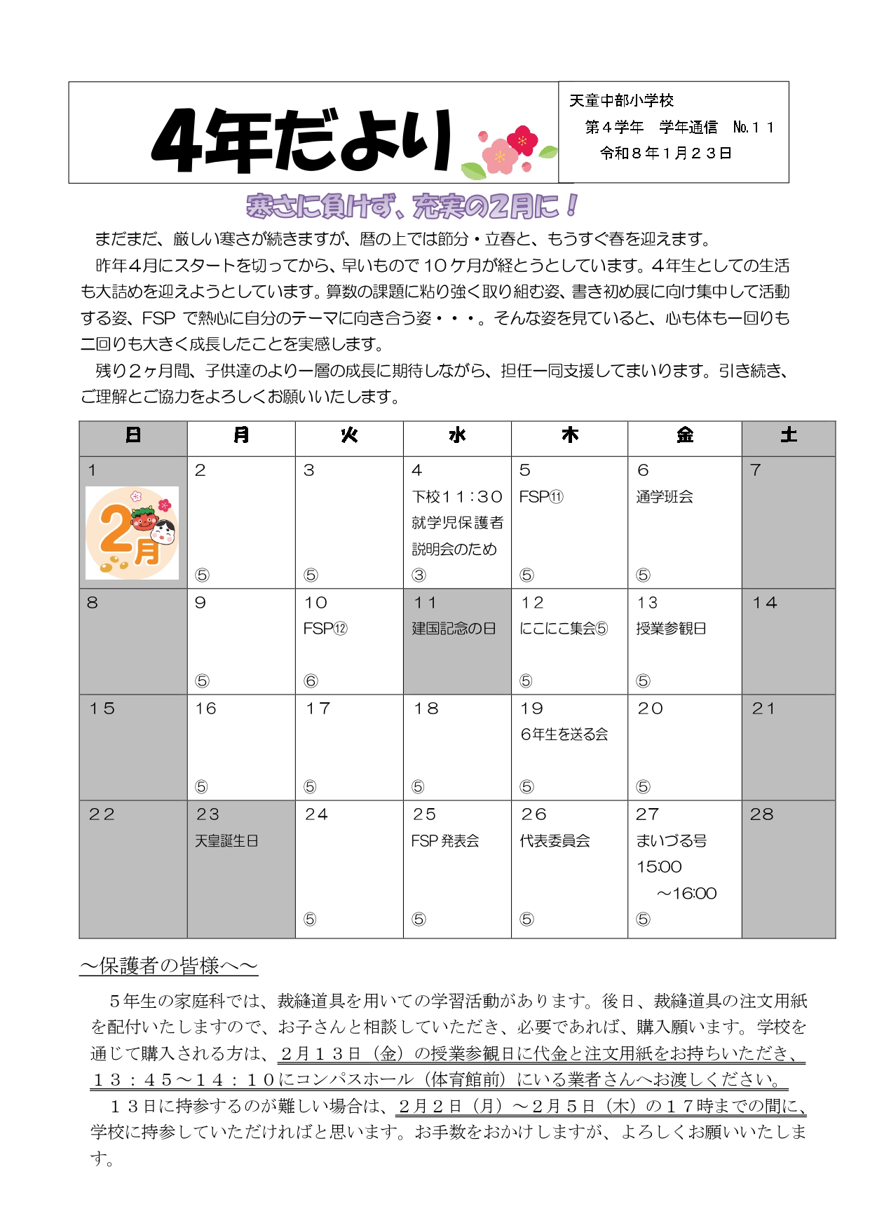 4学年だより No.11