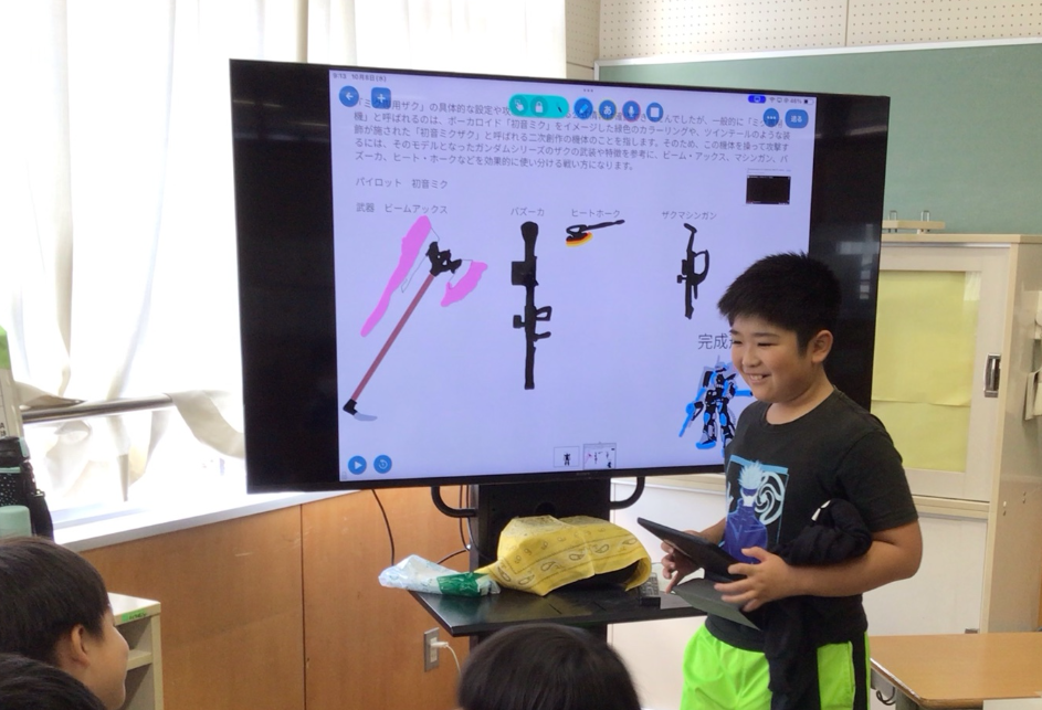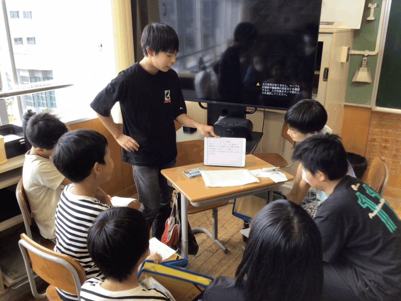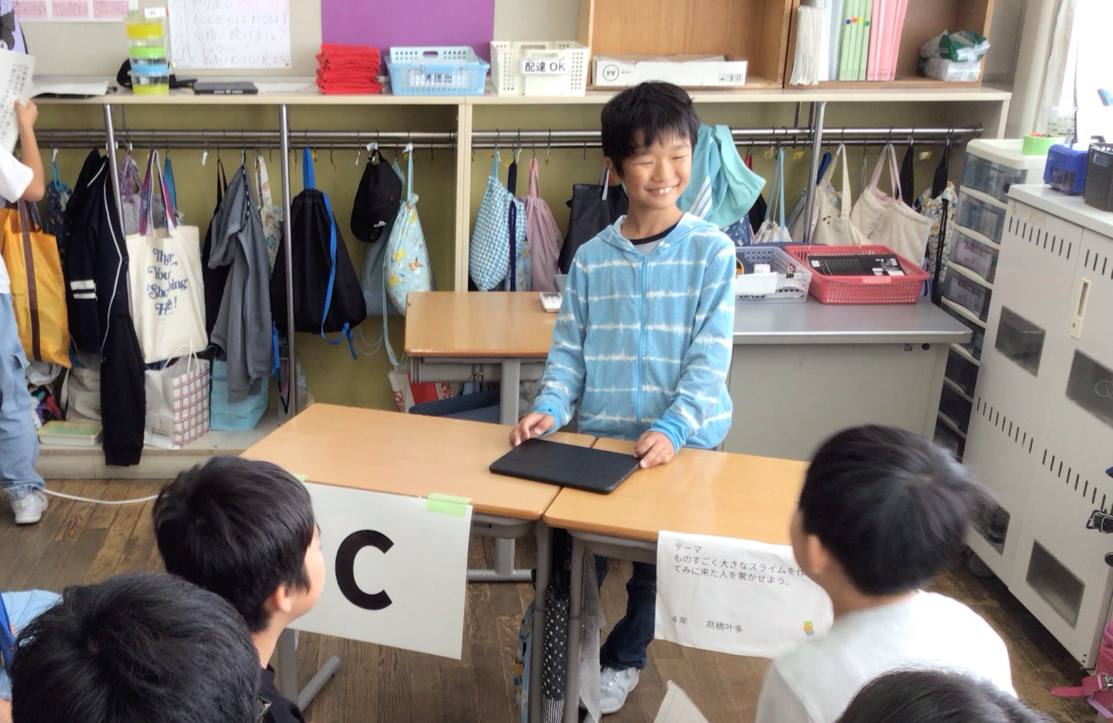 各教室にブースを4~6所程度作り、タブレットに実践をまとめ発表し合いました。